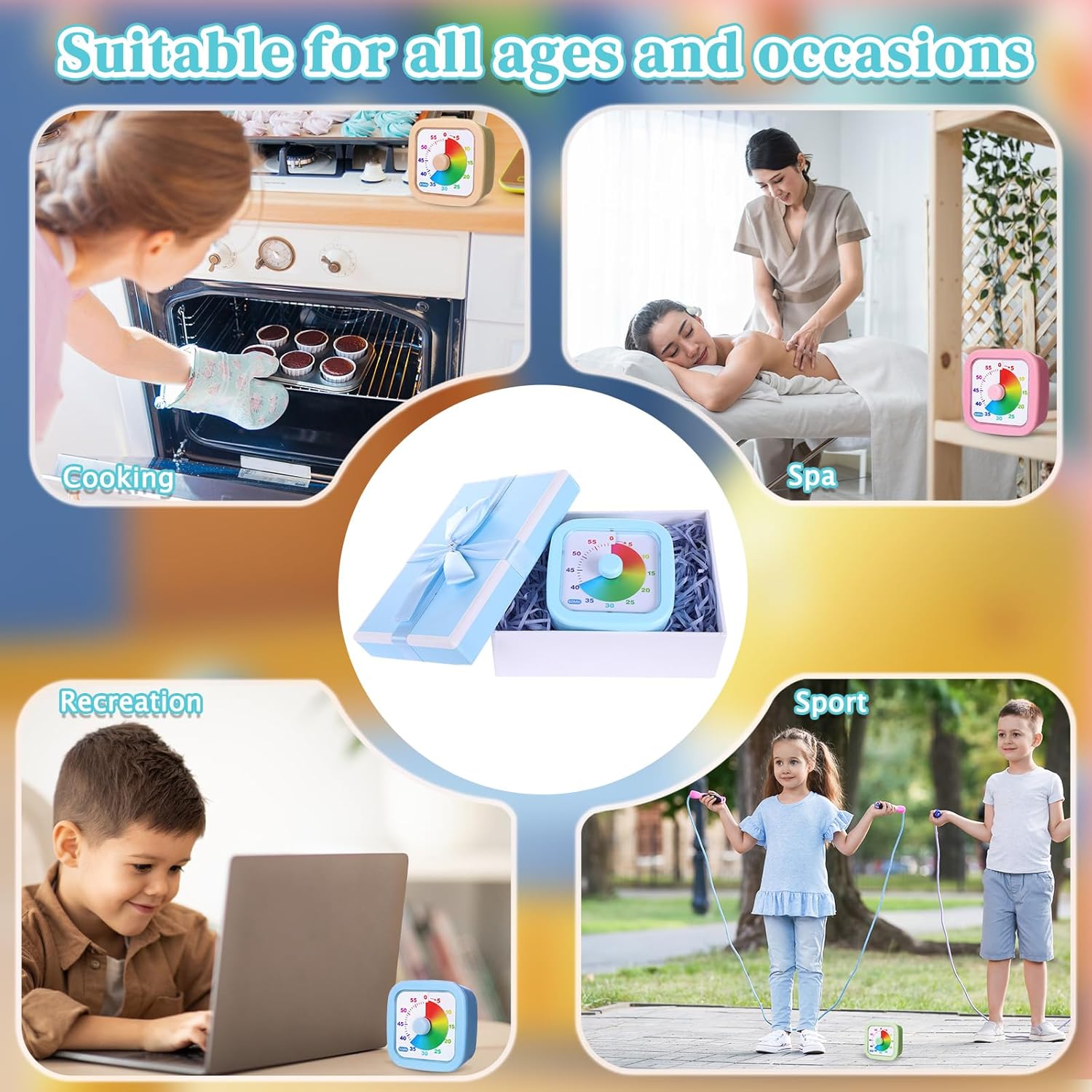 Features: Package: Receive four visual timers in one package, offering a complete solution for multiple rooms or family members. Each study timer provides the same robust features, ensuring consistency in time management across different environments. Easy to Operate: Starting the countdown is as simple as rotating the knob, with a button press to stop. The intuitive design of our 60-minute countdown timer makes it user-friendly, encouraging individuals of all ages to manage their time independently. Specifications: Material: as shown in the picture Color: pink, blue, yellow, green Size: as shown in the picture Package includes: 4 x Visual timer Notes: Manual measurement, please allow slight errors on size. The color may exist a slight difference due to different screen displays