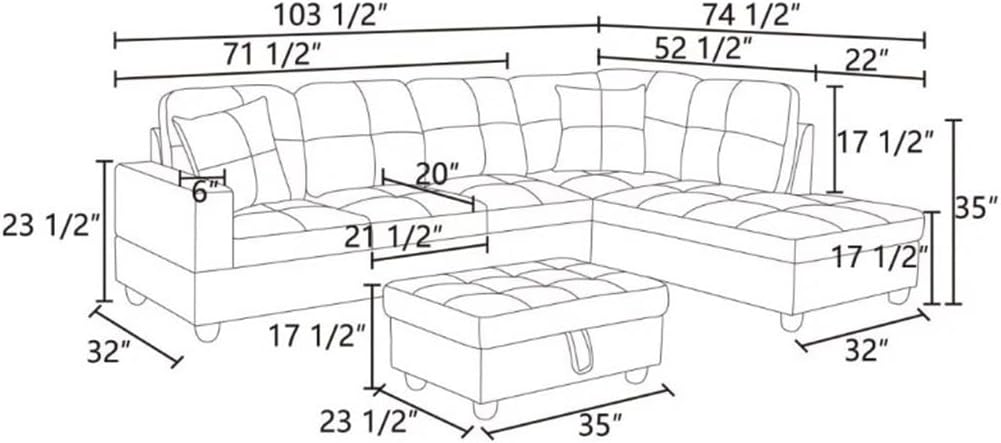 The Flannel And PVC Couch Sofa Set cushion uses soft Flannel And PVC, and the cushion uses thick foam. The Flannel Sectional Sofa Set has elegant appearance and excellent comfort. The Flannel And PVC Couch Sofa Set cushion is made of highly resilient foam, which provides a comfortable super stretch structure, bringing extra comfort and longevity. The L-Shaped Sofa is constructed with frames, which are sturdy and durable; Every process of making a sofa emphasizes perfection and is almost demanding. This L-Shaped Sofa blends classic and rural elements, while the Flannel And PVC Couch Sofa Set brings an elegant style to your living room and perfectly blends with any home decor. The Flannel Sectional Sofa Set features a thick seat cushion and fluffy cushions to help you relax as much as possible. The Flannel Section Sofa Set is for living rooms, conference rooms, hotels, bedrooms, offices, home theaters, and other places Specification. Main Color: beige Main Material: Flannel And PVC Filler: Foam A: 74.5" x 32" x 35"(L x W x H) B: 71.5" x32" x35"(L x W x H) Item Weight: 201.25 lbs Package Included: Sofa *1, Without Ottoman (no other presentation items included). Notice: 1. Due to manual measurement, please allow 2-3% error, before you bid, please make sure you don't mind. 2. The color may vary due to different displays, please refer to the actual product.
