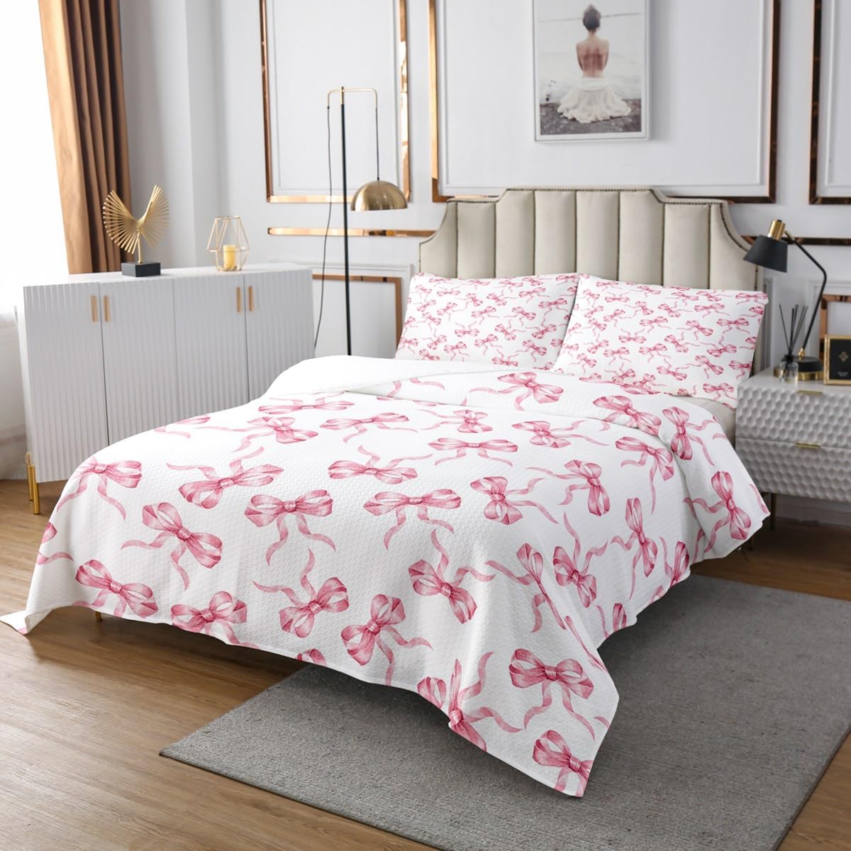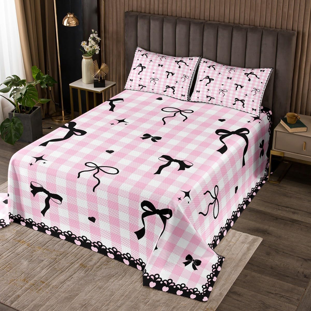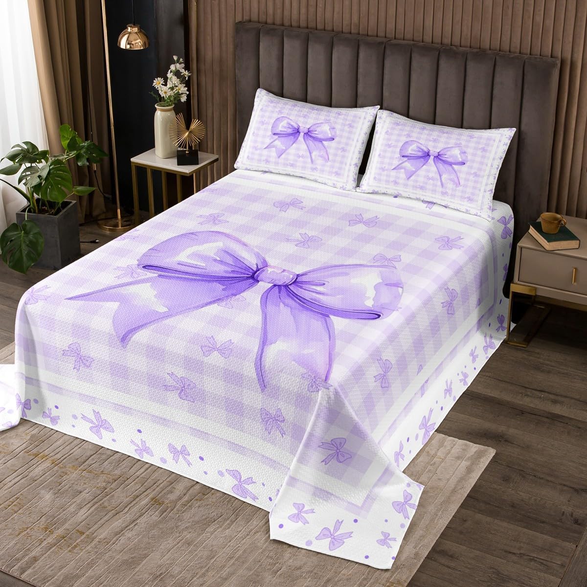 Erosebridal Kawaii Bowknot Kids Bedspread Set Twin Purple Ribbon Bow Quilt Set for Teen Girls Women,Cute Princess Bow Coverlet Set Soft Lightweight Bedding Set for All Season 1 Pillow Case