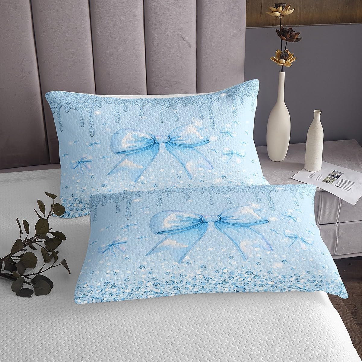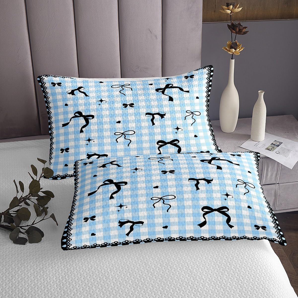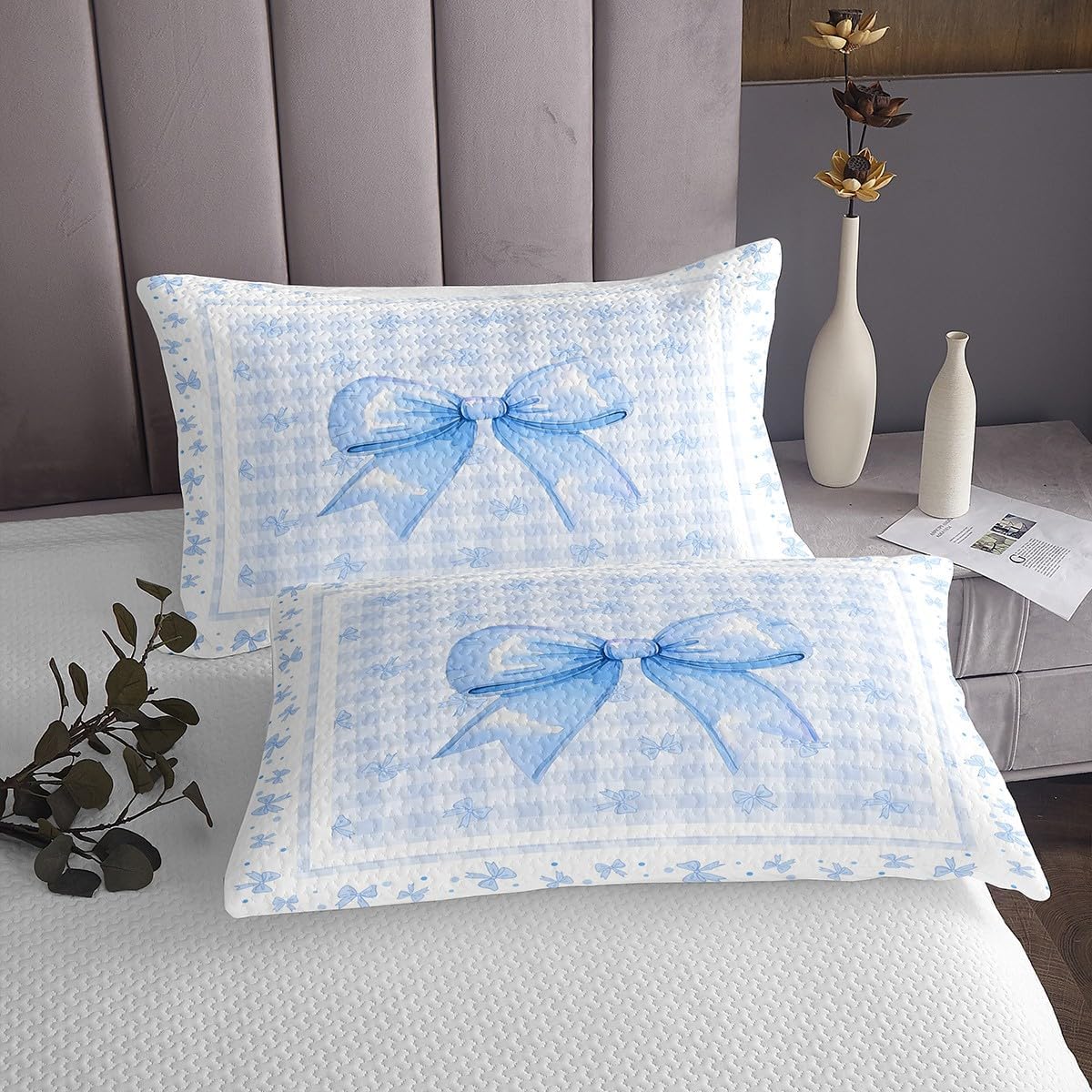 Erosebridal Kawaii Bowknot Kids Bedspread Set Twin Purple Ribbon Bow Quilt Set for Teen Girls Women,Cute Princess Bow Coverlet Set Soft Lightweight Bedding Set for All Season 1 Pillow Case