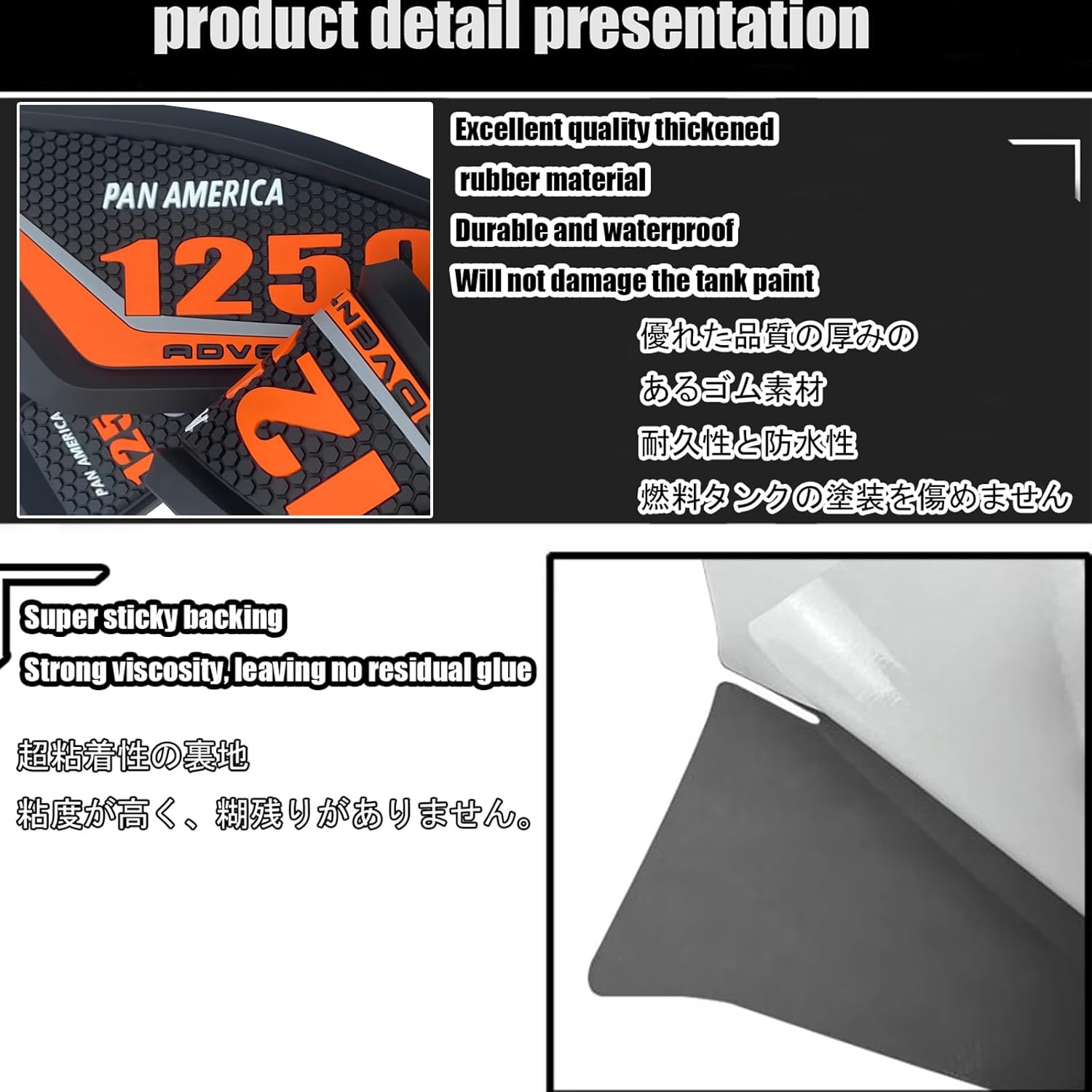 Features: **Thickened high-density 3D particle texture bottom rubber improves strength, strong viscosity, no residual glue, good toughness, not easy to break, firm, excellent bonding quality. **Made of thickened rubber material,Grain surface texture, strong viscosity, no residual glue, super sticky backing to prevent damage to the clear coating, durable and waterproof, easy to stick and remove, does not damage the fuel tank paint, strong and excellent bonding quality. **The sides of the tank pad prevent the tank from scratching The side tank pad can prevent scratches or wear marks on the knees of the tank to the greatest extent。 **The raised surface has a good anti-slip effect, and the legs fit the body firmly during emergency braking to keep the body stable; embedded three-dimensional fonts, beautiful and stylish atmosphere **Stylish thickened 3D font particle bottom texture design pad can decorate your motorcycle to attract attention. **Exquisite appearance: Professionally manufactured, fine workmanship, stylish design, the stylish design ensures perfect fit and easy installation, while making your motorcycle look more stylish, making you eye-catching when riding a motorcycle, providing a perfect decoration for your motorcycle. **Increase the motorcycle's grip better, sporty appearance, better driving experience, and scratch resistance. **Easy to install, no instructions required. -Applicable models: For Pan American 1250 - Special 1250 pan american 1250 - special 1250 2020-2021-2022-2023-2024-2025-2026 Remarks: [Please make sure this part fits your motorcycle before ordering]