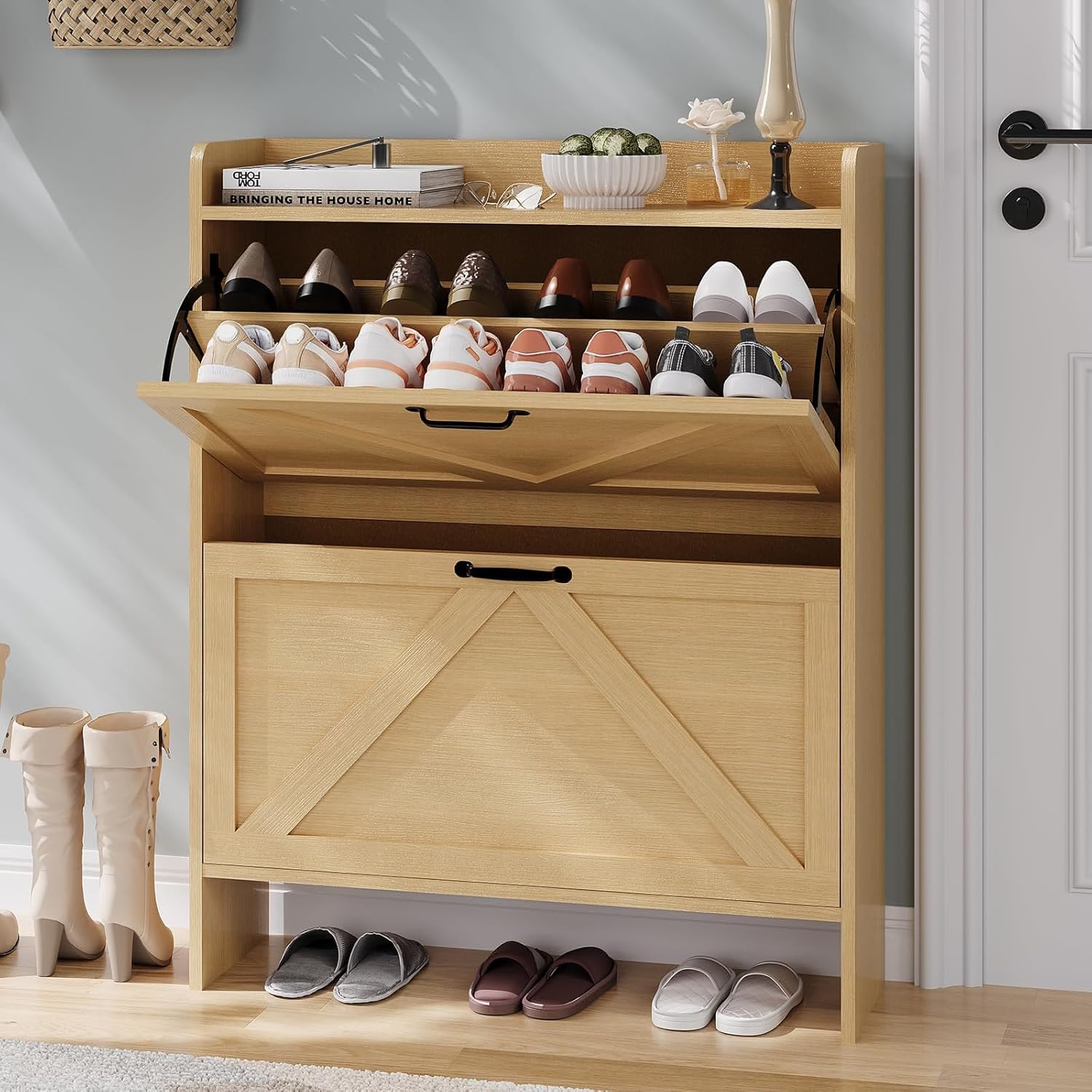 | Set Name | GAOMON Freestanding Narrow Black Shoe Cabinet with 2 Flip Drawers |