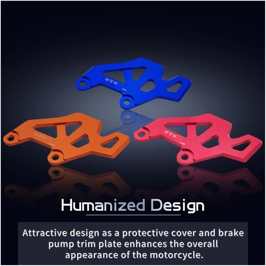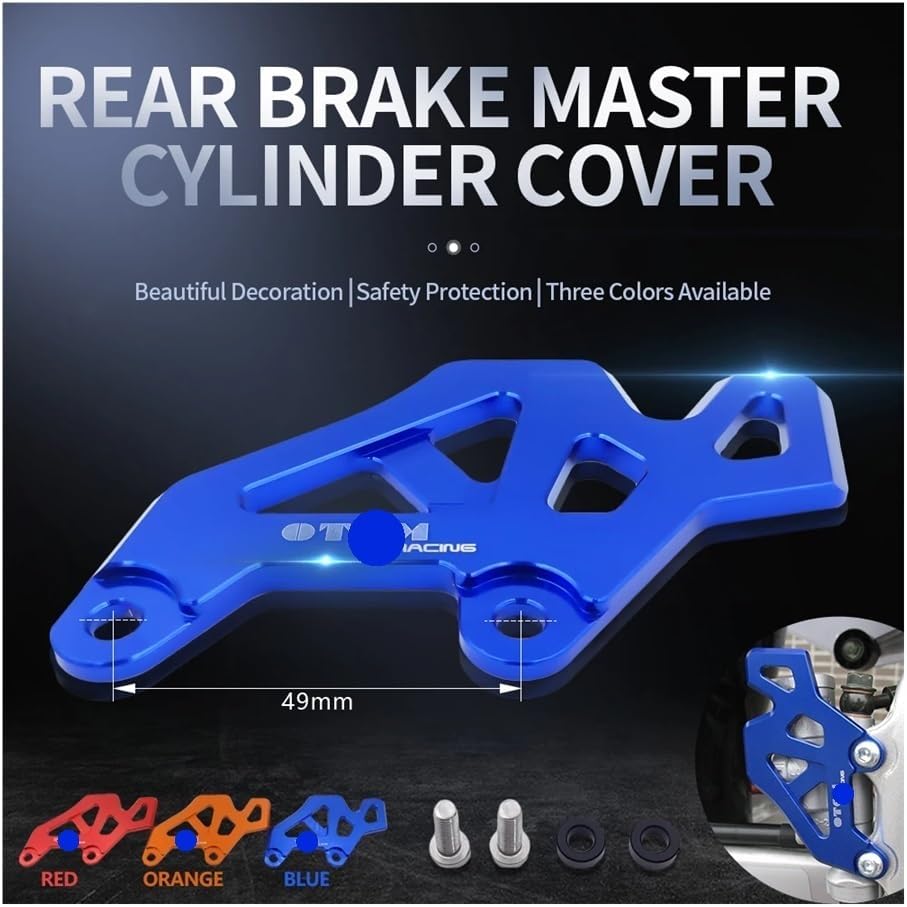 Maintain the pressure of the brake system, prevent brake fluid leakage, and the replacement parts of the tank cap are available at any time, which not only maintains the motorcycle brake system, but also increases the aesthetics of the motorcycle.Item Weight : 65gModel Name : Rear Brake Master Cylinder CoverItem Type : Covers & Ornamental Mouldings: 6061 Aluminum AlloySize : 120*69*49*6*5*3mmHole Spacing : 49mmBolt Size : M6*23mmBolt Gasket Size : 6.6*5mmFeature 1 : Enhanced upgraded version,made of aluminum alloy CNC machining, the surface is anodized.Feature 2 : protection prevents damage to the rear brake front pump.Color : Red/Orange/BlueQuantity : 1 PieceFitment 1 : For T4 T6 K6 K6R GUIZUN Bo&suer MX4 M4 M5 M6 Fitment 2 : For AVANTIS MOTOLAND BRZ MOTAX
