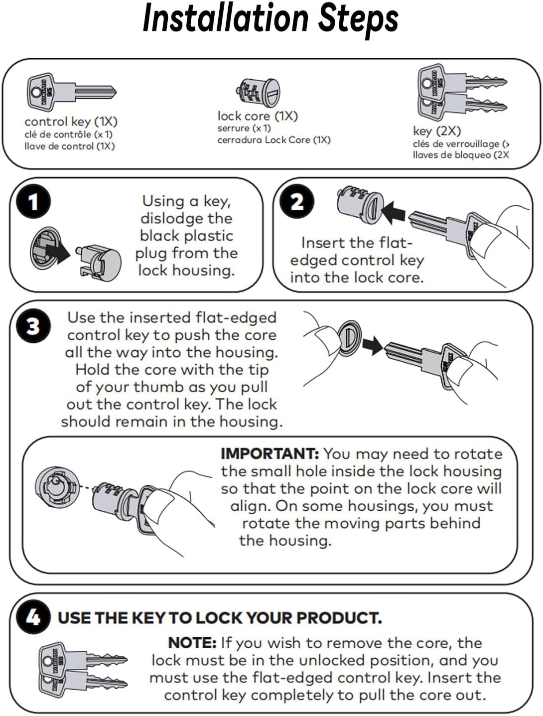 | Included Components | 4 X Lock cylinders, 2 X Unlocking key, 1 X Control key |