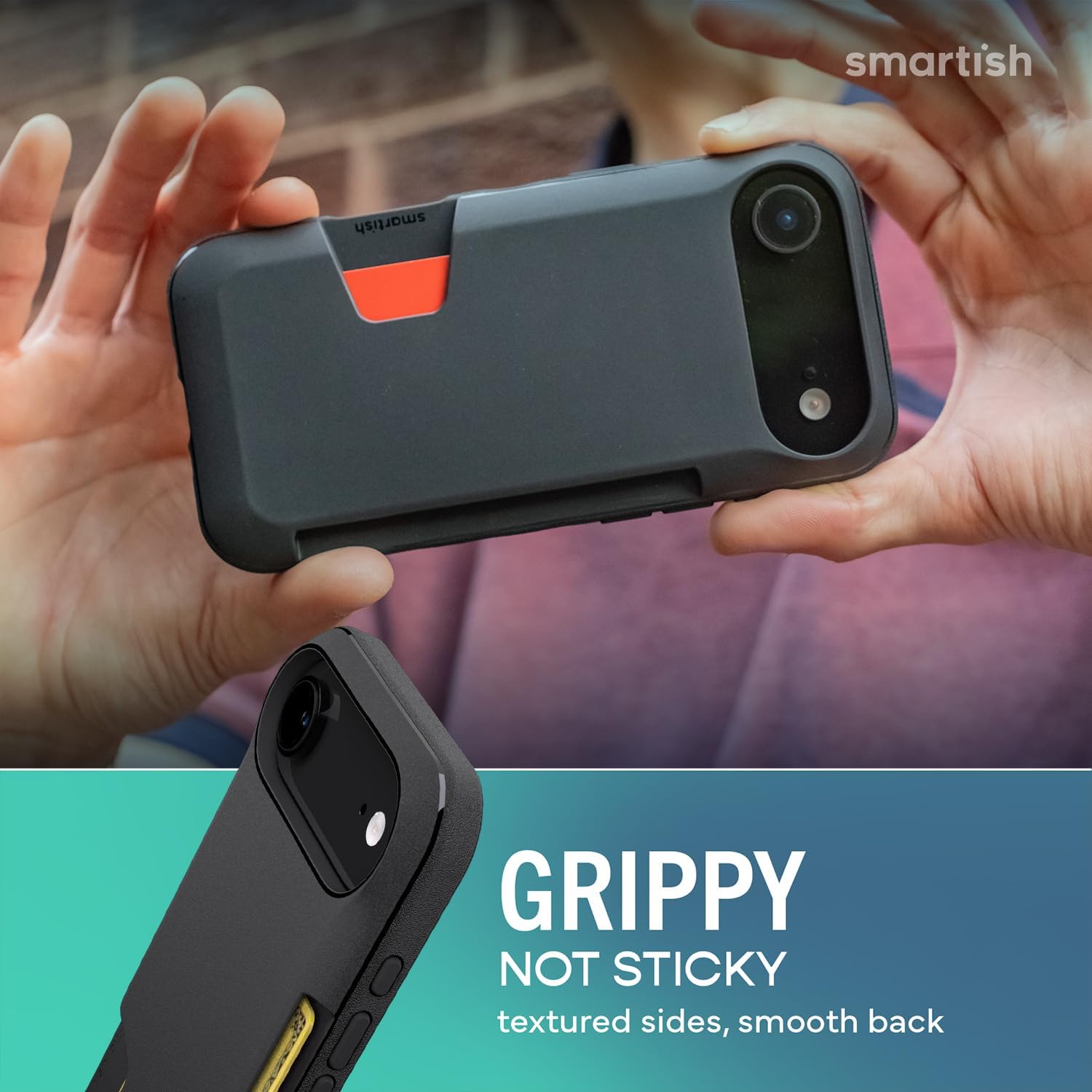 | Embellishment Feature | Air Pocket Corners, Grippy Sides, Grippy Sides, Smooth Back, Slim Wallet, Logo, Raised Lip for Screen & Camera Protection |