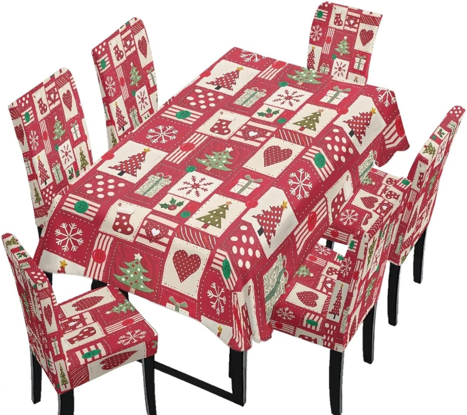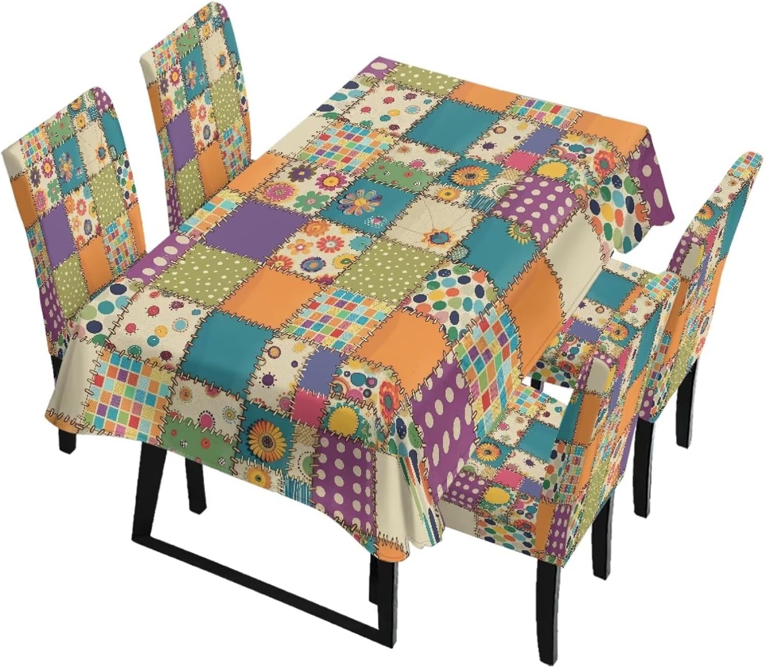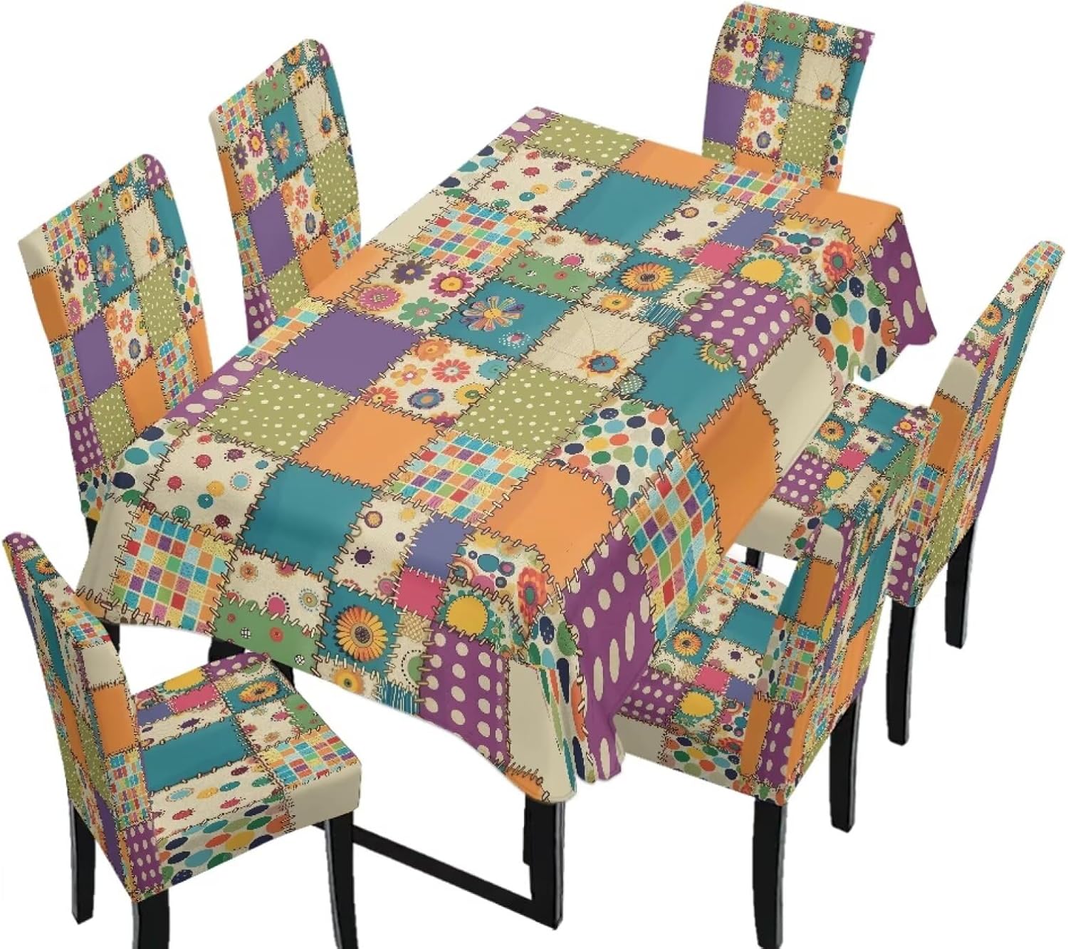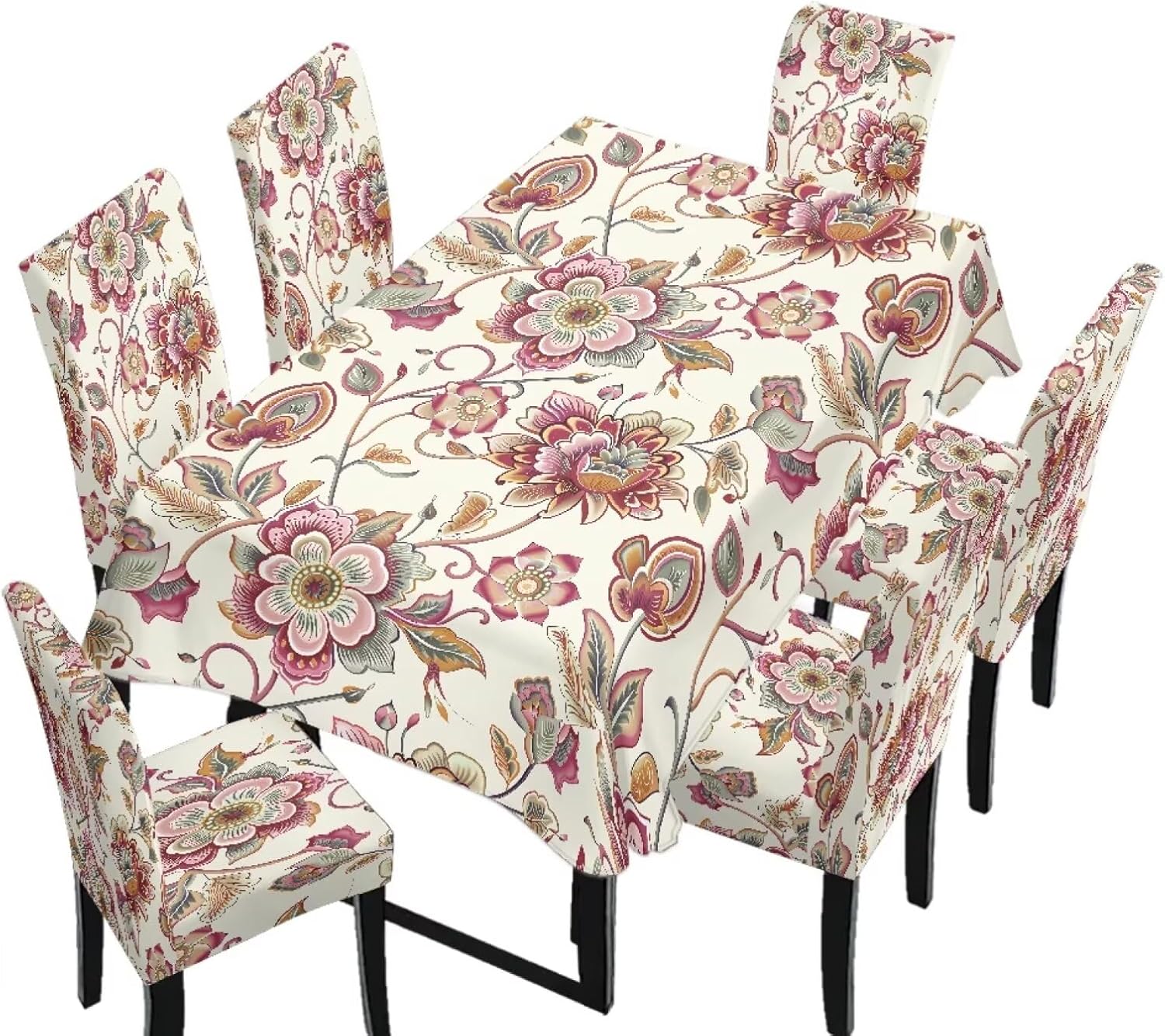 Size Chart Tablecloth dimensions: Length: 82.68 in = 210 cm, Width: 55.12 in = 140 cm Chair cover dimensions: Backrest length: 17.72-25.59 in = 45-65 cm, Backrest width: 15.75-19.69 in = 40-50 cm; Seat cushion length: 15.75-19.69 in = 40-50 cm, Seat cushion width: 15.75-19.69 in = 40-50 cm Please allow 1-2 cm differ due to manual measurement. Please check and compare the size carefully before buying Wide Usage: Removable protective chair cover and table cloth can be used for dining room, hotel, restaurant, wedding, banquet, meeting, celebration, dinner, ceremony, picnic, camping picnic, birthday, graduation etc Easy to Install: Effortlessly install and remove in just a few simple steps. Our chair covers are machine washable for hassle-free cleaning and maintenance, and are reusable Lightweight and Easy to Store: When not in use, it folds down to a compact size for easy storage in cabinets or storage boxes, taking up minimal space in your home. This makes it convenient for seasonal storage or temporary organization Easy to Care: Our comfortable dining chair covers and stain-resistant tablecloths are machine washable in cold water and can be tumble dried. Iron on low heat or no ironing required. Do not bleach