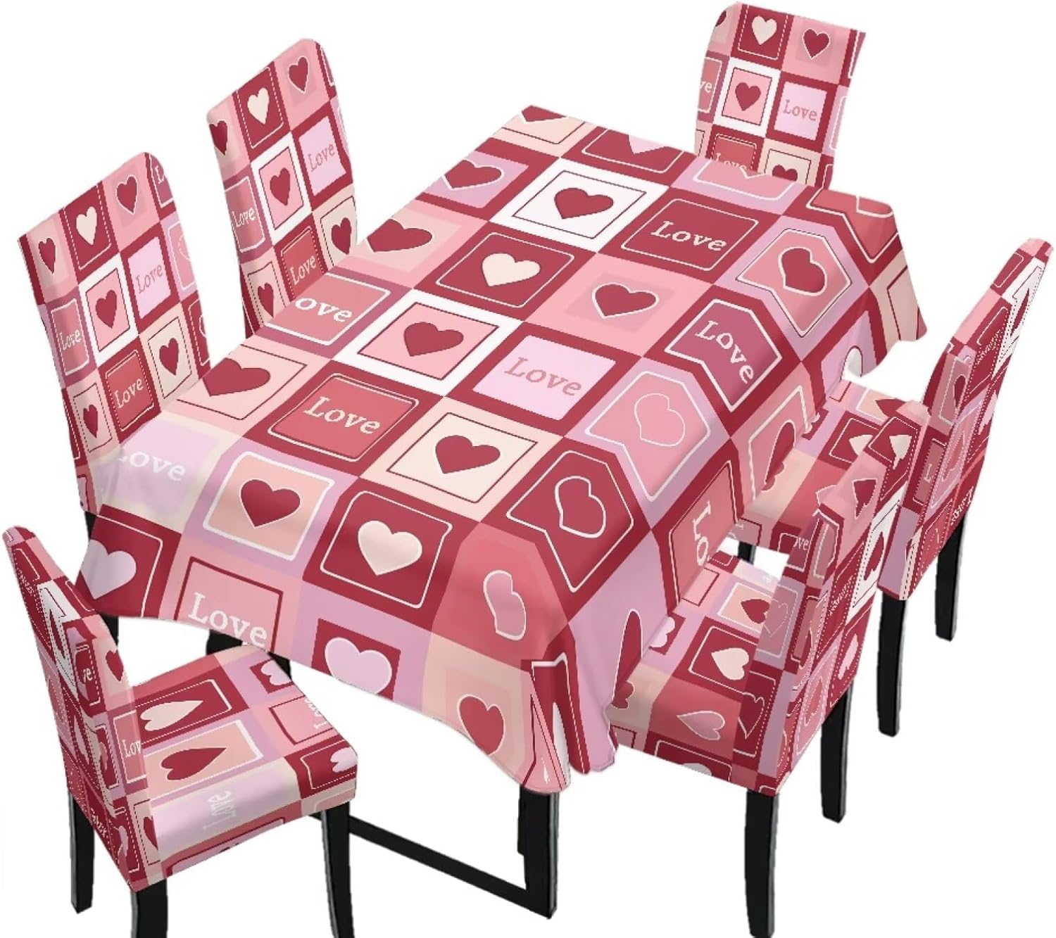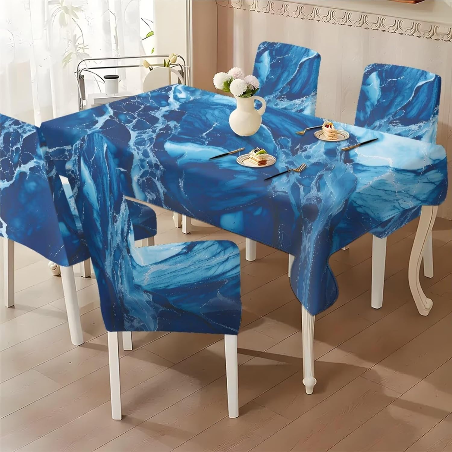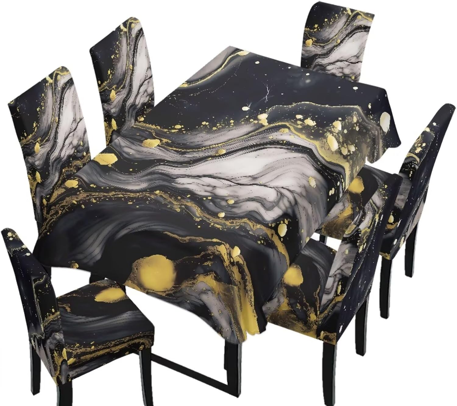 Size Chart Tablecloth dimensions: Length: 82.68 in = 210 cm, Width: 55.12 in = 140 cm Chair cover dimensions: Backrest length: 17.72-25.59 in = 45-65 cm, Backrest width: 15.75-19.69 in = 40-50 cm; Seat cushion length: 15.75-19.69 in = 40-50 cm, Seat cushion width: 15.75-19.69 in = 40-50 cm Please allow 1-2 cm differ due to manual measurement. Please check and compare the size carefully before buying Wide Usage: Removable protective chair cover and table cloth can be used for dining room, hotel, restaurant, wedding, banquet, meeting, celebration, dinner, ceremony, picnic, camping picnic, birthday, graduation etc Easy to Install: Effortlessly install and remove in just a few simple steps. Our chair covers are machine washable for hassle-free cleaning and maintenance, and are reusable Lightweight and Easy to Store: When not in use, it folds down to a compact size for easy storage in cabinets or storage boxes, taking up minimal space in your home. This makes it convenient for seasonal storage or temporary organization Easy to Care: Our comfortable dining chair covers and stain-resistant tablecloths are machine washable in cold water and can be tumble dried. Iron on low heat or no ironing required. Do not bleach