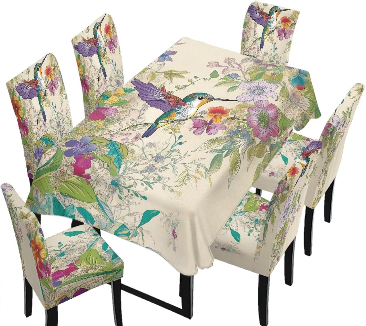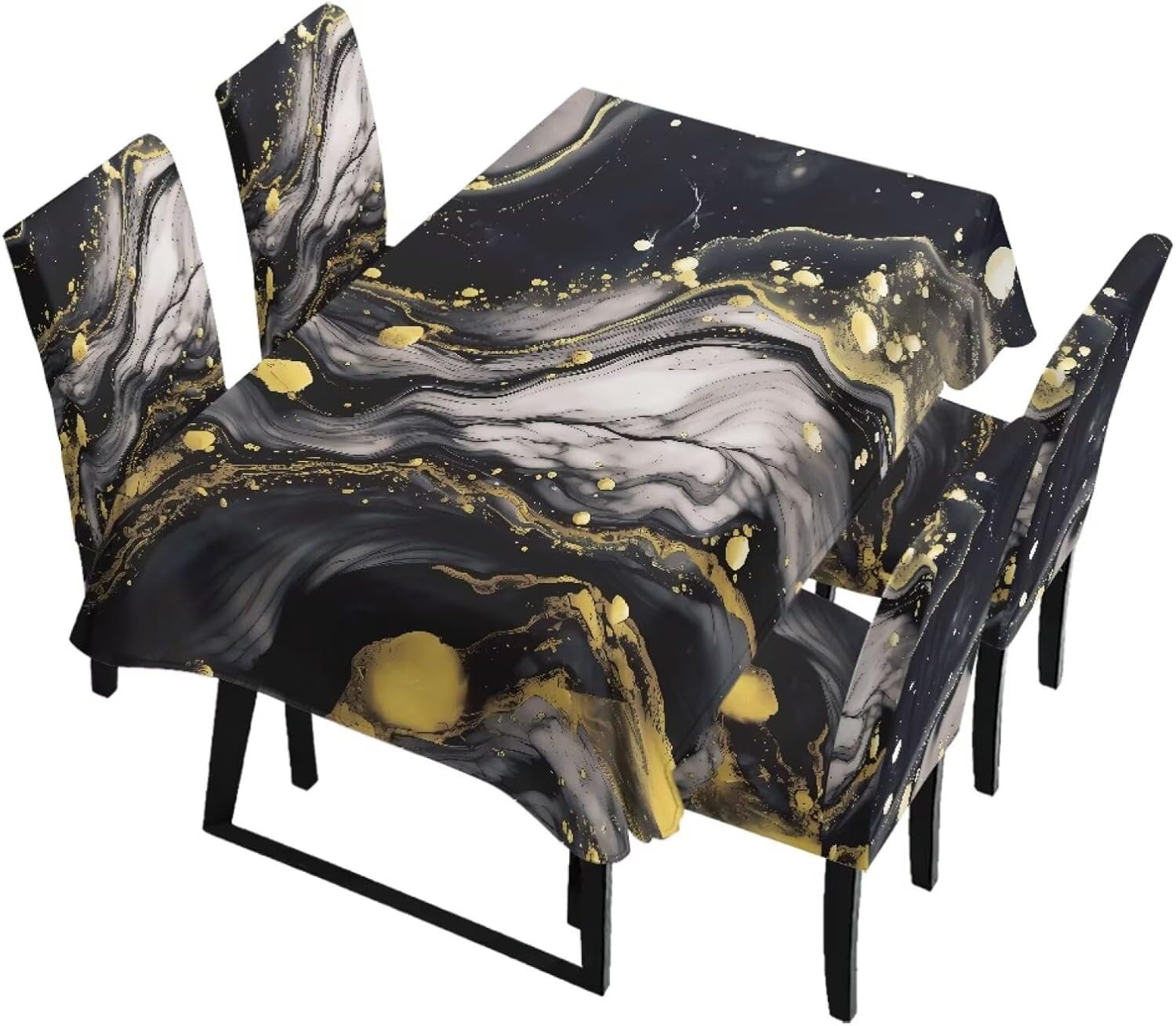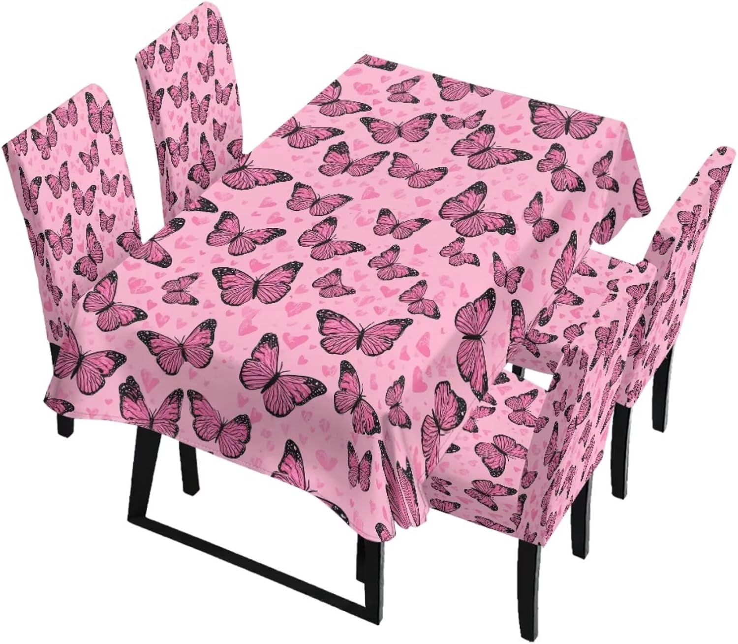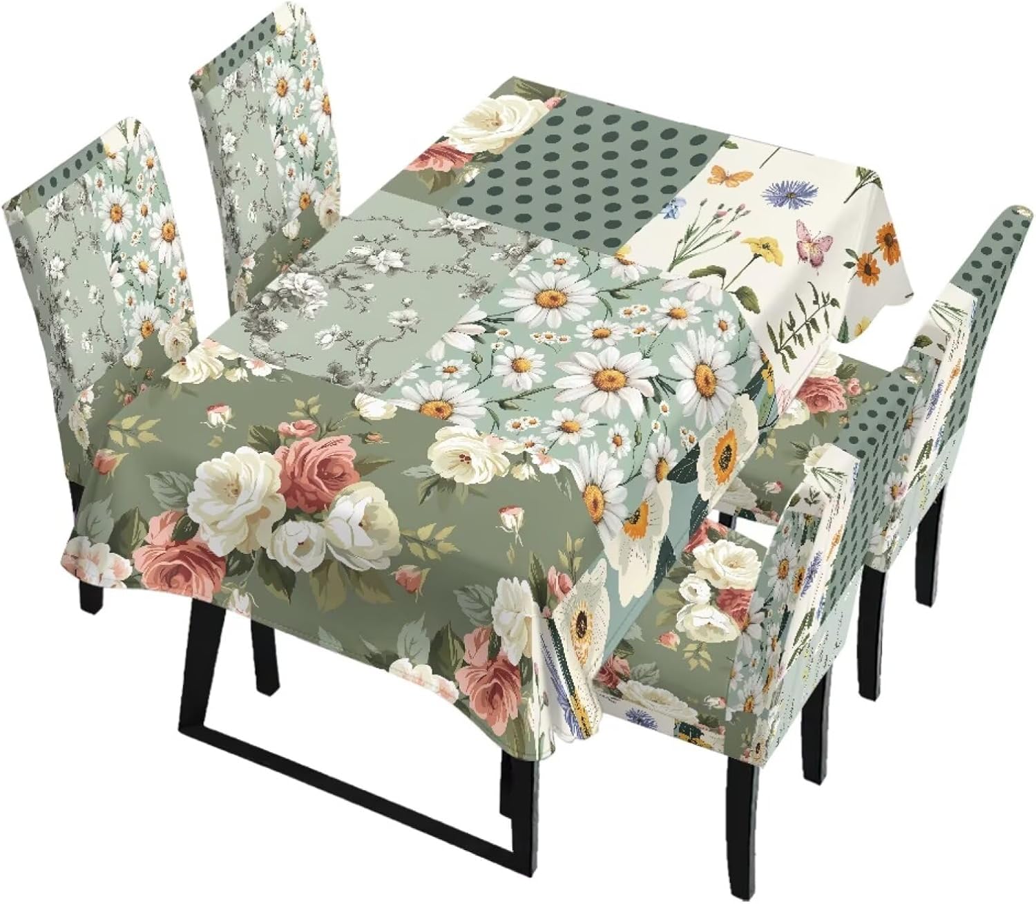 Size Chart Tablecloth dimensions: Length: 82.68 in = 210 cm, Width: 55.12 in = 140 cm Chair cover dimensions: Backrest length: 17.72-25.59 in = 45-65 cm, Backrest width: 15.75-19.69 in = 40-50 cm; Seat cushion length: 15.75-19.69 in = 40-50 cm, Seat cushion width: 15.75-19.69 in = 40-50 cm Please allow 1-2 cm differ due to manual measurement. Please check and compare the size carefully before buying Wide Usage: Removable protective chair cover and table cloth can be used for dining room, hotel, restaurant, wedding, banquet, meeting, celebration, dinner, ceremony, picnic, camping picnic, birthday, graduation etc Easy to Install: Effortlessly install and remove in just a few simple steps. Our chair covers are machine washable for hassle-free cleaning and maintenance, and are reusable Lightweight and Easy to Store: When not in use, it folds down to a compact size for easy storage in cabinets or storage boxes, taking up minimal space in your home. This makes it convenient for seasonal storage or temporary organization Easy to Care: Our comfortable dining chair covers and stain-resistant tablecloths are machine washable in cold water and can be tumble dried. Iron on low heat or no ironing required. Do not bleach