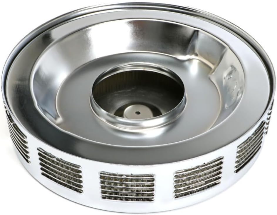 Air Cleaner Assembly, Corvette, 14 in Round, 3 in Element, 5-1/8 in Carb Flange, Dropped Base, Louvered, Steel, Chrome, Kit