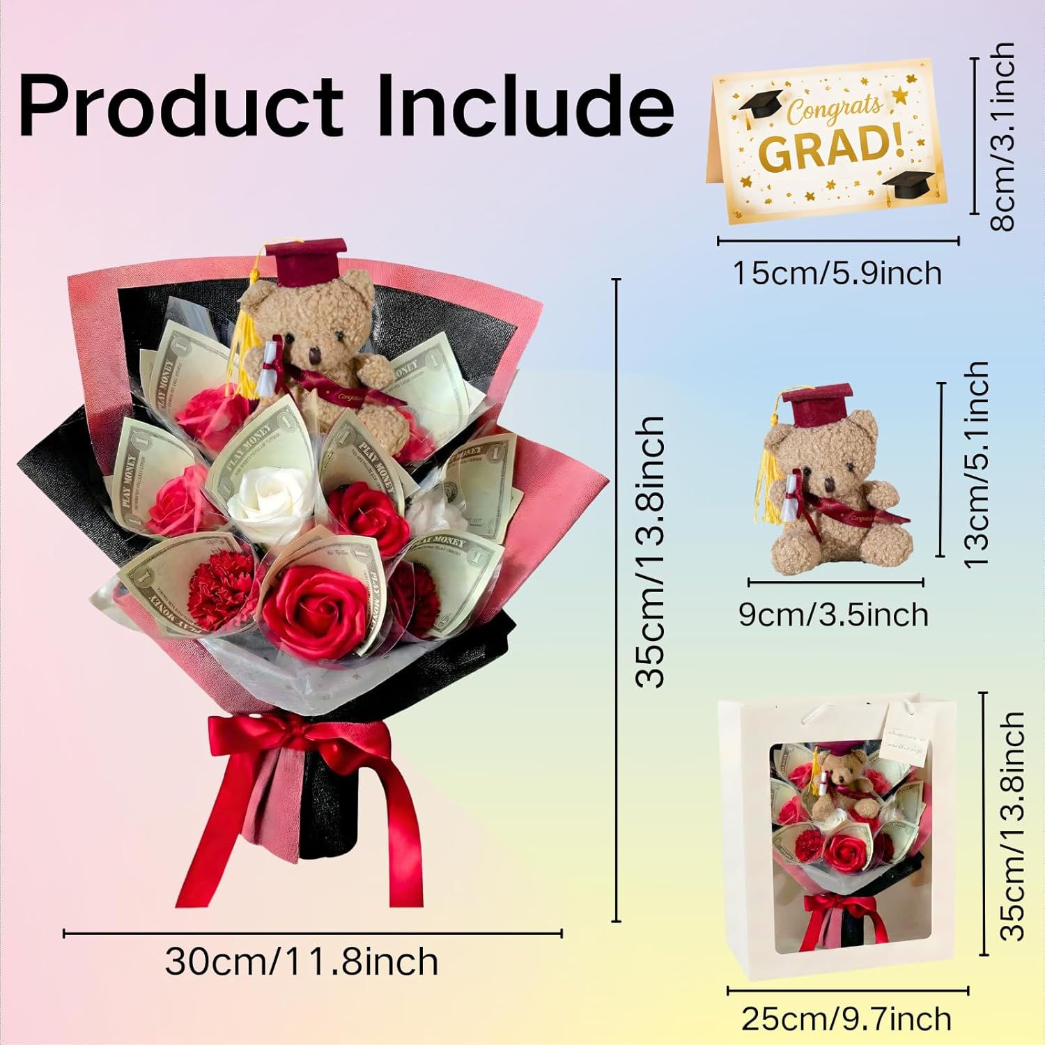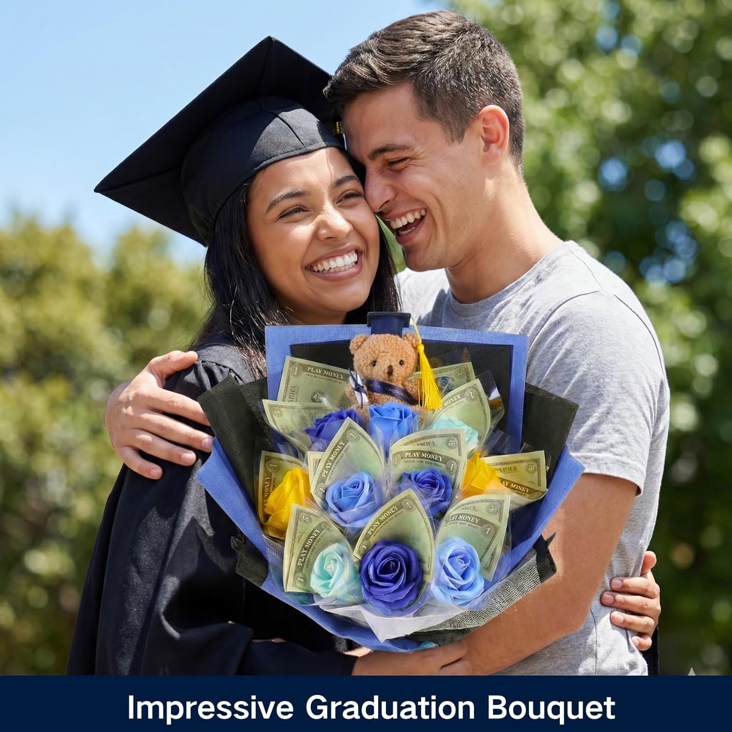 Celebrate an important milestone with this Money Bouquet Kit for Graduation 2026, a creative and elegant way to give cash as a meaningful gift. Designed for graduates of middle school, high school, or college, this bouquet transforms a traditional money gift into a memorable keepsake. Featuring realistic blue and white artificial roses paired with a charming graduation Accent, this money flower bouquet is maintenance-free and long-lasting. It stays beautiful without watering or fading, making it perfect for display long after the celebration. The bouquet is thoughtfully designed with transparent slots that allow you to easily roll and insert bills (bills not included). This DIY design lets you personalize the gift to match your budget and style, while keeping the presentation neat and secure. Each set comes complete with a premium transparent gift box with handles and a greeting card, making it ready to give right out of the box. No extra wrapping or preparation is needed—ideal for both planned and last-minute graduation celebrations. Perfect as a graduation gift for loved ones, this money bouquet kit is also suitable for birthdays, anniversaries, and congratulatory occasions. A stylish alternative to envelopes or gift cards, it offers a thoughtful way to celebrate achievements in 2026.